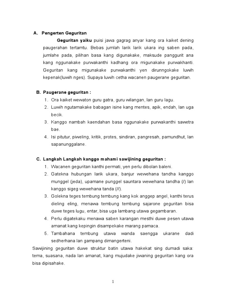 Nih Bab Geguritan Paugeran Geguritan Lan Langkah Langkah Kanggo Mahami Sawijining Geguritan Materi Tertulis