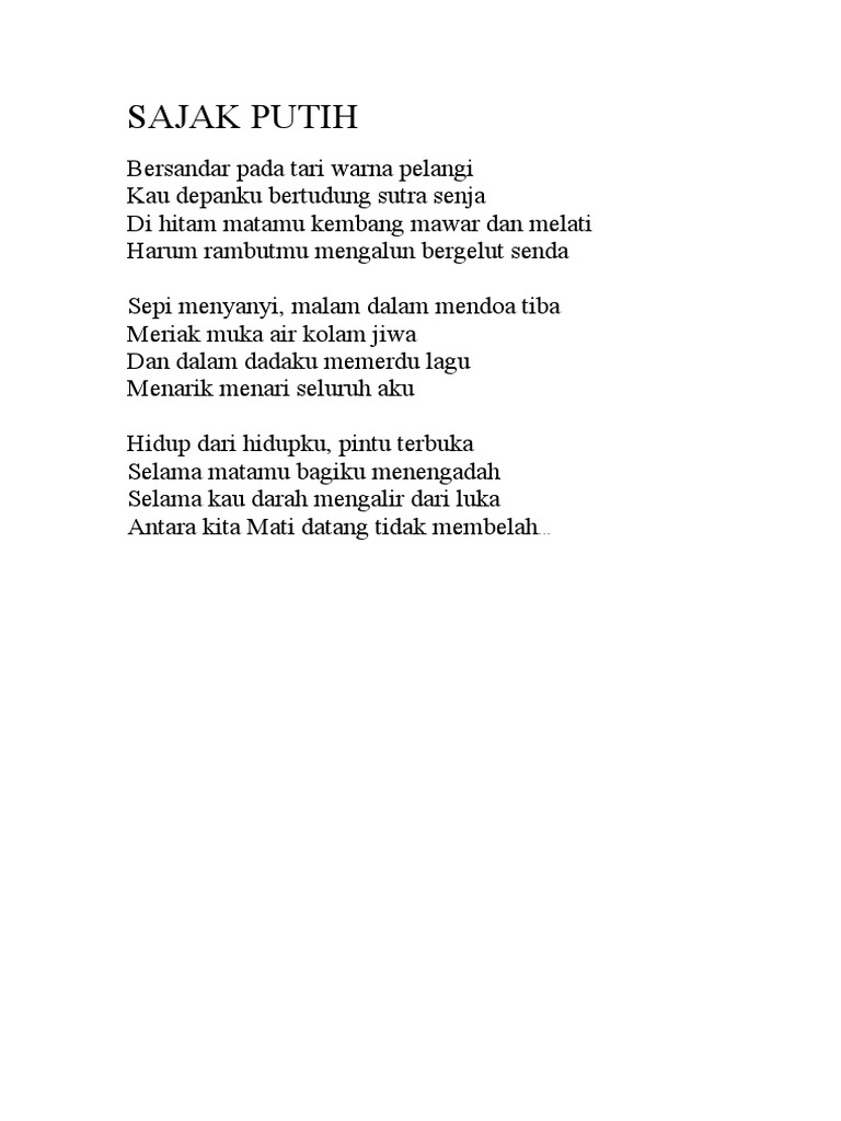 Dari karyanyo nan bajudul Aku Inyo adolah panyair takamuko di IndonesiaChairil Anwar dipakiroan alah manulis 96 karyo tamasuk 70 puisi. Sebanyak 431 orang tewas karena pembantaian ini. Sep 22 2019 Awal pertumbuhan puisi Malaysia modern sangat dipengaruhi oleh puisi Indonesia modern.